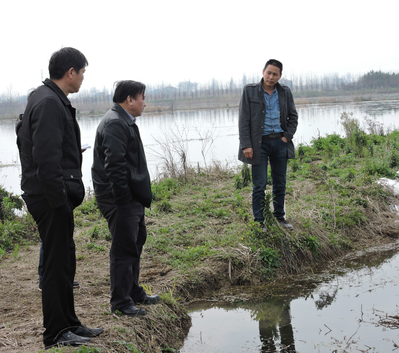 2015年3月12日,揭雨成教授、博士周红灿、研究生刘玲等在益阳市茈湖口镇村部刘村长的陪同下来到了茈湖口镇典型的低洼稻田实地考察。针对低洼稻田容易受洪灾影响这一情况调研新的种养模式。
